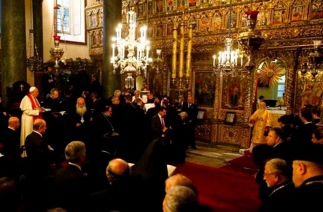 πρός τήν Α.Ἁγιότητα τόν Πάπαν Φραγκίσκον κατά τήν Θείαν Λειτουργίαν τῆς Ἑορτῆς τοῦ Ἀποστόλου Ἀνδρέου ἐν τῷ Πανσέπτῳ Πατριαρχικῷ Ναῷ