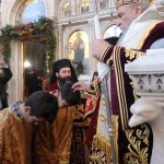 Στο τέλος της Θείας Λειτουργίας ο Σεβασμιώτατος κ.Ιγνάτιος χειροθέτησε δύο νέους Αναγνώστες του Μητροπολιτικού Ιερού Ναού, που διακονούν επί σειρά ετών στο ιερό βήμα και πλησίον του Μητροπολίτου, τον Αντώνιον Μίζιον και Πρόδρομον Κοντόπουλον , προς τους οποίους απηύθυνε πατρικές νουθεσίες, αλλά και θερμές ευχαριστίες για την έως τώρα προσφορά τους, ενώ αναγνώσθηκε από τον Πρωτοσύγκελλο της Ιεράς Μητρόπολεως, π.Αχίλλιο και το εορταστικό μήνυμα του Μητροπολίτου, στο οποίο έκανε λόγο για τον Παλαιό των ημερών, που επεσκέφθη τον κόσμο και γι’αυτήν την υπέρτατη δωρεά της χάριτος που βιώνοντάς την κανείς μπορεί να εγκαταλείψει την τραγική πλάνη της αγάπης του εαυτού του και να θυσιαστεί στην αγάπη του άλλου, που τελικά είναι ο αδελφός του! Ακολουθεί το εορταστικό μήνυμα του Μητροπολίτου: