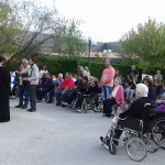 Μια όμορφη και ξεχωριστή εμπειρία είχαν οι Νέοι του Ναού μας την Παρασκευή το απόγευμα!Βρέθηκαν στο Κέντρο Αποκατάστασης ΄΄ΑΡΩΓΗ΄΄,στα πλαίσια των εβδομαδιαίων επισκέψεών τους, και έψαλλαν στην Δ΄ Στάση των Χαιρετισμών προς την Υπεραγία Θεοτόκο μαζί με τους ασθενείς,τους συνοδούς και το προσωπικό.Μέσα στο φυσικό περιβάλλον και με τα κελαηδίσματα των πουλιών οι ψυχές όλων ανέβηκαν στον ουρανό προς συνάντηση του Δημιουργού Θεού και της Παναγίας Μητέρας του Χριστού,αφού οι λατρευτικές ευκαιρίες είναι ελάχιστες γι’αυτούς.Όλοι άκουσαν με προσοχή το σύντομο κήρυγμα από τον π.Ραφαήλ,που ήταν αφιερωμένο στη Μάνα Παναγιά, η Οποία δέχεται ως προσφορά τον Ακάθιστο Ύμνο από εμάς τους ανθρώπους και μας λυτρώνει από κάθε συμφορά του βίου μας και κυρίως από τον κατακλυσμό της αμαρτίας και την φοβερή κόλαση.’Επειτα οι Νέοι έκαναν επισκέψεις στα δωμάτια των ασθενών και συνομίλησαν μαζί τους,αφού πλέον έχει αναπτυχθεί οικειότητα μεταξύ τους.