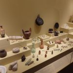 Αρχικά θαυμάσαμε τα παλαιολιθικά ευρήματα (2.500.000-10.000 π.Χ.) που βρέθηκαν κατά μήκος της όχθης του Πηνειού ποταμού,ο οποίος διατρέχει όλο το πλάτος της Θεσσαλίας από την Πίνδο ως το Αιγαίο.Έπειτα περάσαμε στη Νεολιθική Εποχή (6.500-3.200 π.Χ.),την Εποχή του Χαλκού (3.200-1.050 π.Χ.) και την Εποχή του Σιδήρου-Γεωμετρική περίοδο (τέλη 11ου-8ος αι. π.Χ.) όπου γνωρίσαμε αντικείμενα της καθημερινής ζωής των ανθρώπων(αγγεία,ειδώλια,κοσμήματα…).Στη συνέχεια περάσαμε στην Αρχαϊκή(7ος-6ος αι. π.Χ.) και την Κλασσική(5ος-4ος αι. π.Χ.) Περίοδο όπου η κα Σδρόλια μας εξήγησε πώς άλλαξε η ζωή των κατοίκων,όταν άρχισαν να καλλιεργούν τη γη και να χρησιμοποιούν τα άλογα.Τότε ανέπτυξαν πλουσιότερο πολιτισμό με κομψώτερα κοσμήματα,νομίσματα,στρατιωτικές περιβολές,επιτύμβιες στήλες…Αμέσως μετά ήρθαμε σε επαφή με την Ελληνιστική περίοδο(4ος-1ος αι. π.Χ.) και τη Ρωμαϊκή περίοδο(1ος αι. π.Χ.-4ος αι. μ.Χ.)και θαυμάσαμε αγάλματα,θρησκευτικά αντικείμενα,΄΄εξελιγμένα΄΄ είδη οικιακής χρήσης κλπ. Ακολούθησε η Παλαιοχριστιανική περίοδος(4ος-8ος αι. μ.Χ.) με τα εκπληκτικά ψηφιδωτά δάπεδα,τα μαρμάρινα κιονόκρανα και τέμπλα των Ναών(με δεσπόζουσα τη Βασιλική του αγίου Αχιλλίου που τα ερείπιά της σώζονται στο λόφο του Φρουρίου) και η Βυζαντινή περίοδος(9ος-14ος αι. μ.Χ.) με τις βυζαντινές εικόνες και τα ξυλόγλυπτα τέμπλα των εκκλησιών(όπου πάλι κέντρο της θρησκευτικής ζωής των Λαρισαίων ήταν ο Ναός του αγ.Αχιλλίου).Η ιστορική διαδρομή στο χρόνο της όμορφης πόλης μας τελείωσε με την Οθωμανική περίοδο(15ος-19ος αι. μ.Χ.) που περιλαμβάνει τα μαύρα χρόνια της τουρκικής σκλαβιάς και μάς έφερε σε γμωριμία με τον πολιτισμό που αναπτύχθηκε σε αυτή.