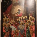 Η πολύ όμορφη αυτή εμπειρία έκλεισε με την επίσκεψη στην περιοδική έκθεση που φιλοξενείται στο Διαχρονικό Μουσείο με θέμα το έτος αφιερωμένο στη Ρωσία.Εκεί πράγματι εντυπωσιαστήκαμε από τις 2 ρώσικες εικονες του 1.800 μ.Χ. που ανήκουν στο Ναό μας,προερχόμενες από τον παλαιό Ναό του αγίου Αχιλλίου,του ΄΄Καλλιάρχη΄΄, και τις οποίες το μουσείο συντήρησε και θα επιστρέψει στο Ναό μας στο τέλος της έκθεσης,στις αρχές του νέου έτους.Η μία εικονίζει την Κοίμηση της Θεοτόκου και η δεύτερη τον άγιο Γεώργιο.
