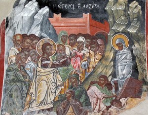 Ἡ εἰκόνα τῆς Ἔγερσης τοῦ Λαζάρου μᾶς προτρέπει νά θυμηθοῦμε τά βαρυσήμαντα λόγια του Κυρίου’ «Ἐγώ εἰμι ἡ ἀνάστασις καί ἡ ζωή. Ὁ πιστεύων εἰς ἐμέ, καν ἀποθάνη, ζήσεται’ καί πᾶς ὁ ζῶν καί πιστεύων εἰς ἐμέ οὐ μή ἀποθάνη εἰς τόν αἰώνα» (Ἴω. 11, 25-26).