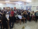 Μέσα σε εορταστικό κλίμα πραγματοποιήθηκε η καθιερωμένη Συνάντηση Νέων του Ναού μας, πρώτη για το καινούργιο έτος, την Τρίτη 9 Ιανουαρίου 2018. Μετά την ακολουθία του Αποδείπνου, ο π.Ραφαήλ ευχήθηκε σε όλους Καλή και Ευλογημένη Χρονιά και μίλησε για το χρόνο και την αξιοποίησή του για την επίτευξη του προορισμού της ζωής μας, που είναι η θέωση και ο αγιασμός. Ευχαρίστησε και συνεχάρηκε τους Νέους για τη συμμετοχή τους στις Ιερές Ακολουθίες του Αγίου Δωδεκαημέρου, καθώς και στις λοιπές δραστηριότητες (φιλανθρωπία, επισκέψεις και κάλαντα σε ιδρύματα, θεατρική παράσταση κ.ά.). Με ιδιαίτερη προσοχή οι Νέοι άκουσαν την περιγραφή και εξήγηση της πτώσης των πρωτοπλάστων, καθώς και τις συνέπειες του προπατορικού αμαρτήματος, στο πλαίσιο της ανάλυσης του ΣΥΜΒΟΛΟΥ ΤΗΣ ΠΙΣΤΕΩΣ, που είναι το θέμα των φετινών συνάξεων.Στο τέλος, ο π.Ραφαήλ ευλόγησε τις Βασιλόπιτες που φιλότιμα ετοίμασαν κοπέλες των Νεανικών Συναντήσεων και έψαλαν όλοι μαζί τα Πρωτοχρονιάτικα κάλαντα.