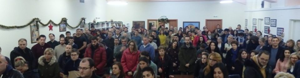 Μέσα σε εορταστικό κλίμα πραγματοποιήθηκε η καθιερωμένη Συνάντηση Νέων του Ναού μας, πρώτη για το καινούργιο έτος, την Τρίτη 9 Ιανουαρίου 2018. Μετά την ακολουθία του Αποδείπνου, ο π.Ραφαήλ ευχήθηκε σε όλους Καλή και Ευλογημένη Χρονιά και μίλησε για το χρόνο και την αξιοποίησή του για την επίτευξη του προορισμού της ζωής μας, που είναι η θέωση και ο αγιασμός. Ευχαρίστησε και συνεχάρηκε τους Νέους για τη συμμετοχή τους στις Ιερές Ακολουθίες του Αγίου Δωδεκαημέρου, καθώς και στις λοιπές δραστηριότητες (φιλανθρωπία, επισκέψεις και κάλαντα σε ιδρύματα, θεατρική παράσταση κ.ά.). Με ιδιαίτερη προσοχή οι Νέοι άκουσαν την περιγραφή και εξήγηση της πτώσης των πρωτοπλάστων, καθώς και τις συνέπειες του προπατορικού αμαρτήματος, στο πλαίσιο της ανάλυσης του ΣΥΜΒΟΛΟΥ ΤΗΣ ΠΙΣΤΕΩΣ, που είναι το θέμα των φετινών συνάξεων.Στο τέλος, ο π.Ραφαήλ ευλόγησε τις Βασιλόπιτες που φιλότιμα ετοίμασαν κοπέλες των Νεανικών Συναντήσεων και έψαλαν όλοι μαζί τα Πρωτοχρονιάτικα κάλαντα.