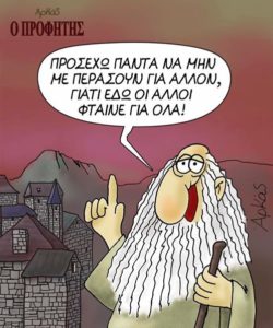 Εξ΄άλλου πως είναι δυνατόν να αποφαίνομαι,ως αυθεντία,δίκην «αλάθητου Πάπα» και να αναφωνώ « ..ανάθεμα στους κλέφτες του δημοσίου βίου,κρεμάλα στους πολιτικούς,φυλακή αυτή που τα πήραν,κάθαρση για όλους» και να εννοώ και τον εαυτό μου;