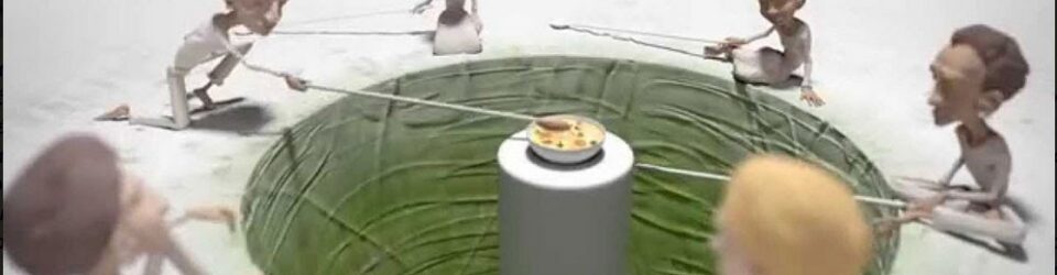 Μετά άκουσε την ίδια φωνή να του λέει: «Έλα τώρα να σου δείξω και τον Παράδεισο». Βρέθηκε τότε σ’ ένα άλλο δωμάτιο όπου πολλοί άνθρωποι κάθονταν γύρω από ένα τραπέζι όμοιο με το προηγούμενο και στη μέση ήταν πάλι μια κατσαρόλα με φαγητό και είχαν τις ίδιες μακριές κουτάλες. Όλοι όμως ήταν χορτάτοι και χαρούμενοι, γιατί ο καθένας έπαιρνε με την κουτάλα του φαγητό από την κατσαρόλα και τάιζε τον απέναντι. Κατάλαβες τώρα κι εσύ πώς μπορείς να ζεις από αυτήν την ζωή τον Παράδεισο;