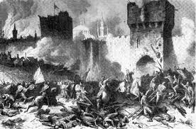 29η Μαΐου….. ὧρα πρώτη τῆς ἡμέρας. Ἐξεδηλώθη ἡ πρώτη ἕφοδος μεταξὺ τῆς πύλης τοῦ Πορφυρογεννήτου κι ἐκείνης τοῦ Ἁγίου Ρωμανοῦ, ὅπου ἐπιτίθετο τὰ ἄτακτα τμήματα τοῦ Μωάμεθ. Ὁ Κωνσταντῖνος ἔχει στὸ πλευρὸ τὸν Ἰουστινιάνη καὶ ἀπεκρούουν ἐπιτυχῶς τὴν ἐπίθεση. Ὧρα τρίτη. Δεύτερη ἐπίθεση τῶν Τούρκων στὴν πύλη τοῦ Ἁγίου Ρωμανοῦ, ποὺ καὶ αὐτὴ ἀποκρούεται ἐπιτυχῶς. Ὁ Κωνσταντῖνος περιχαρὴς φωνάζει: «Συστρατιῶται καὶ ἀδελφοὶ, αὔτη ἡμῶν ἐστὶν ἡ νίκη. Ὁ Θεὸς ὁ ὑπὲρ ἡμῶν πολεμεῖ». Τρίτη ἐπίθεση τῶν κατακτητῶν. Ὁ Μωάμεθ παροτρύνει τὸ σῶμα τῶν γενιτσάρων: «ἔχομεν, ὦ φίλοι, τὴν πόλιν ἔχομεν ἤδη, φεύγουσιν οἱ ἄνδρες ἡμᾶς οὐκέτι παραμένειν ἀνέχονται. Γυμνῶν τῶν προμαχώνων τὸ τεῖχος ὀλίγου πόνου τὸ ἔργον καὶ ἡ Πόλις ἑάλω…. χωρεῖτε πρὸς τὸ ἔργον εὐψύχως καὶ γίνεσθε ἄνδρες ἀγαθοὶ καγῶ μεθ’ ἡμῶν». Τότε οἱ Τοῦρκοι, ὀρμητικότεροι μετὰ ἀπὸ ἀρκετὲς ἀποκρούσεις τῶν ὑπερασπιστῶν, ἐπικράτησαν. Ὁ Ἰουστινιάνης τραυματίζεται. Πενήντα περίπου Τοῦρκοι εἰσβάλλουν στὸ ἐσωτερικὸ τῶν τειχῶν τῆς Πόλεως κι ἀνακαλύπτουν, ὅτι κοντὰ στὴν πύλη τοῦ Χαρσίου ἢ Καλιγαρείας ὑπάρχει μία ἀνοιχτῆ δρύινη πόρτα. Λεγόταν κερκόπορτα ἢ ἀλλιῶς πύλη τοῦ κίρκου καὶ ὁδηγοῦσε σὲ ἕναν ἱπποδρόμιο ἔξω ἀπὸ τὰ τείχη, τὸν Ξυλόκερκο. Ἀπὸ αὐτὴν εἰσῆλθαν, διασπώντας τὴν ἄμυνα τῶν ὑπερασπιστῶν, προκαλώντας τὴν Ἅλωση. Οἱ βυζαντινοὶ στρατιῶτες μόλις ἀντελήφθησαν τὴν εἰσβολὴ τῶν γενιτσάρων ἄρχισαν νὰ φωνάζουν ΕΑΛΩ Η ΠΟΛΙΣ!