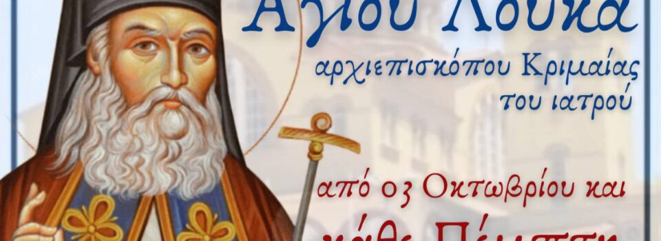 Α) 1.Εσπερινός και Μικρό Απόδειπνο: 6 μ.μ. 2.Όρθρος: 7.30 π.μ. Β) Θεία Λειτουργία θα τελέσουμε: 1.Κάθε Σάββατο και κάθε Κυριακή. 2.Δευτέρα 30 Σεπτεμβρίου-ΑΓΡΥΠΝΙΑ στις 8.00 μ.μ. για την Παναγία Γοργοεπήκοο-ΑΓΙΑΣΜΟΣ. (Την Τρίτη 1 Οκτωβρίου ΔΕΝ θα έχουμε Θεία Λειτουργία τοπρωί). 3.Τετάρτη 2 Οκτωβρίου (Κυπριανού ιερομ.) 4.Πέμπτη 3 Οκτωβρίου (Διονυσίου Αρεοπαγίτου). 5.Παρασκευή 11 Οκτωβρίου (Φιλίππου του διακόνου). […]