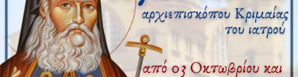 Από την Πέμπτη 3 Οκτωβρίου 2024 και κάθε Πέμπτη στις 7.00 μ.μ. θα τελείται στον Ιερό Μητροπολιτικό και Καθεδρικό Ναό του Αγίου Αχιλλίου Λαρίσης, Ιερά Παράκληση προς τιμήν του εν Αγίοις Πατρός ημών Λουκά, Αρχιεπισκόπου Κριμαίας και Συμφερουπόλεως, του Ιατρού.