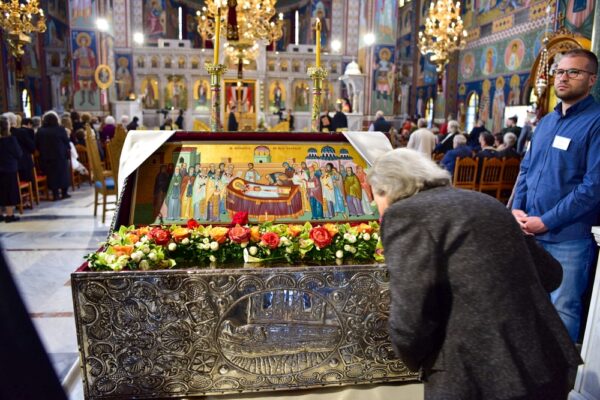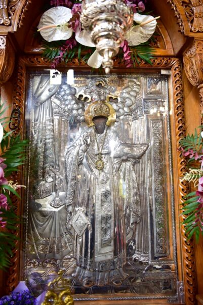 Προ της απολύσεως, ανοίχτηκε από τους Αρχιερείς και τέθηκε σε προσκύνηση η Λάρνακα των Λειψάνων του Μυροβλήτου μας Αγίου.