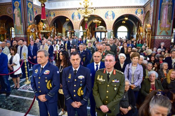 Τους ύμνους απέδωσαν τα μέλη της ανδρικής και γυναικείας χορωδίας «ΧΟΡΟΣ ΑΓΓΕΛΙΚΟΣ», με χοράρχη τον κ. Γεώργιο Καραγιαννάκη, ενώ παρέστησαν συμπροσευχόμενοι ο Διοικητής της 1ης Στρατιάς κ. Σταύρος Παπασταθόπουλος, η χωρική Αντιπεριφερειάρχης κ. Μαρία Γαλλιού, ο Αντιδήμαρχος Πολιτισμού κ. Θωμάς Ρετσιάνης, περιφερειακοί και δημοτικοί σύμβουλοι.