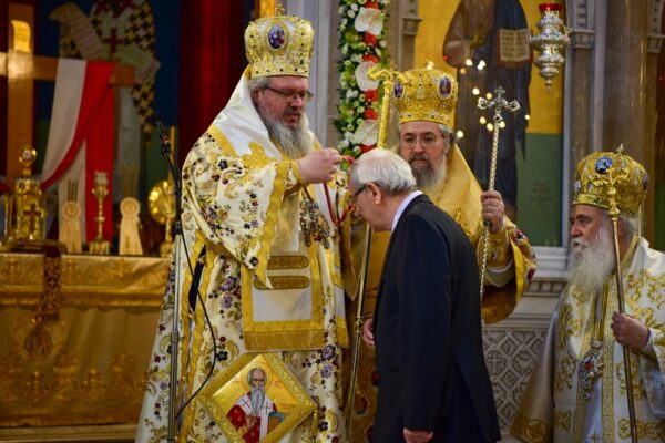 Συγχοροστάτησαν οι Σεβασμιώτατοι Μητροπολίτες Κερκύρας, Παξών και Διαποντίων Νήσων κ. Νεκτάριος και Λευκάδος και Ιθάκης κ. Θεόφιλος, προσκεκλημένοι του οικείου Ιεράρχου, Σεβασμιωτάτου Μητροπολίτου Λαρίσης και Τυρνάβου κ. Ιερωνύμου.