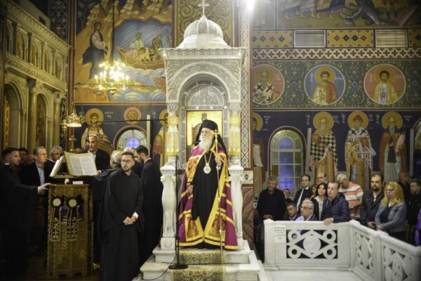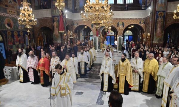 Στον Ιερό Μητροπολιτικό Ναό του Αγίου Αχιλλίου τελέστηκε ο μεθέορτος Εσπερινός της εορτής του πολιούχου και προστάτου της πόλεως Λαρίσης, Αγίου Αχιλλίου του θαυματουργού και μυροβλήτου.
