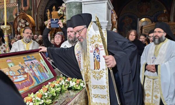Στον Εσπερινό χοροστάτησε ο Σεβασμιώτατος Μητροπολίτης Λαρίσης και Τυρνάβου κ. Ιερώνυμος, ο οποίος, προ της απολύσεως, απευθυνόμενος σε όλους τους Λαρισαίους αδελφούς, στάθηκε στην αγάπη που τρέφουν οι πιστοί προς τον Άγιο τους, μία αγάπη που αποδεικνύεται καθημερινά από τις γονυκλισίες τους ενώπιον της Αγίας Λάρνακας, τους συνεχάρη για την υποδειγματική στάση τους καθ’ όλη τη διάρκεια του προσκυνήματος και ευχήθηκε να έχουμε όλοι την ευλογία του Αγίου στη ζωή μας.