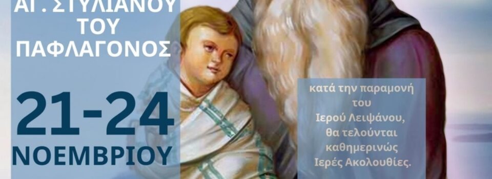 Λειτουργικό πρόγραμμα Ι. Παρεκκλησίου Αγ. Στυλιανού επί τη ελεύσει αποτμήματος Ιερού Λειψάνου του Αγίου Στυλιανού του Παφλαγόνος: Παρασκευή 21 Νοεμβρίου 2025 • 5.00 μ.μ.: Υποδοχή αποτμήματος Ιερού Λειψάνου του Αγίου από την Ιερά Μονή Κορώνας και στη συνέχεια θα τελεστεί Μέγας πανηγυρικός Αρχιερατικός Εσπερινός, χοροστατούντος του Σεβ. Μητροπολίτου Λαρίσης και Τυρνάβου κ. Ιερωνύμου. • 7.00 […]