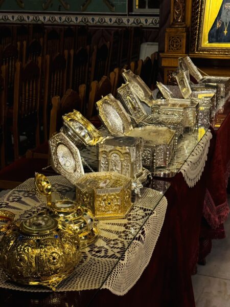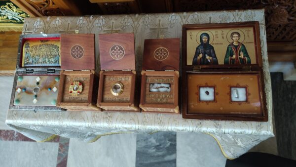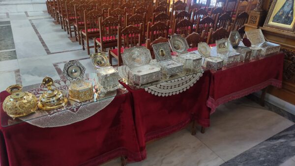 Την Παρασκευή 19 Δεκεμβρίου, στις 7.00 μ.μ. θα τελεστεί στον Ναό μας το Μυστήριο του Ευχελαίου για την καλύτερη προετοιμασία μας για την εορτή των Χριστουγέννων και θα τεθούν προς προσκύνηση από τους πιστούς όλα τα ιερά λείψανα που φυλάσσονται στον Ναό μας: των Αγίων Αχιλλίου, Λουκά Κριμαίας, Αναστασίας Ρωμαίας, Νικηφόρου του λεπρού, Αμφιλοχίου του εν Πάτμω, Ελευθερίου, Γεωργίου Καρλσίδη, Νίκωνος του «μετανοείτε», Μαρίνης μεγ/ρος, Γεδεών εν Τυρνάβω, Γεωργίου εκ Ραψάνης, Ραφαήλ και Νικολάου εν Λέσβω, Χριστίνης, Νικολάου του Πλανά, Νεκταρίου Πενταπόλεως, Ιωακείμ του Ιθακησίου, Παρασκευής, Ιωάννου του καλυβίτου, Μαρδαρίου μάρτυρος, Ιωάννου του Μονεμβασιώτου, Παντελεήμονος του ιαματικού, Δημητρίου Γκαγκαστάθη, Δανιήλ Κατουνακιώτου, Αθανασίου Χριστιανουπόλεως, Αγίων Τεσσαράκοντα…