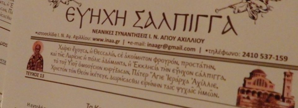 ΠΡΟΣΚΛΗΣΗ Ἡ Πανελλήνιος Ἕνωσις Θεολόγων (Π.Ε.Θ.), ὑπό τήν αἰγίδα τῆς Ἱερᾶς Μητροπόλεως Λαρίσης καί Τυρνάβου, διοργανώνει Ἐπιμορφωτική Ἡμερίδα τό Σάββατο 28 Σεπτεμβρίου 2019 καί ὥρα 10:30 π.μ., στό Ἀμφιθέατρο τοῦ 4ου Δημοτικοῦ Σχολείου Λάρισας (Κουμουνδούρου καί Ἀνθίμου Γαζή) μέ διακεκριμένους ὁμιλητές Καθηγητές Πανεπιστημίου καί θέμα: «Ἡ ἀναγκαιότητα τῆς Ὀρθόδοξης Θεολογίας καί ἀγωγῆς στό σχολεῖο» Ἡ […]